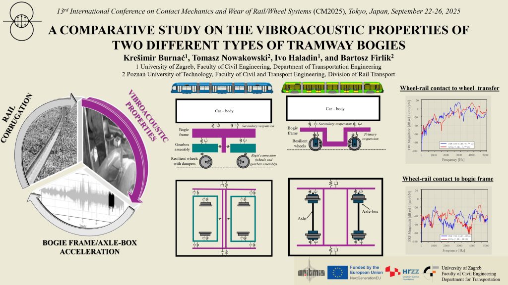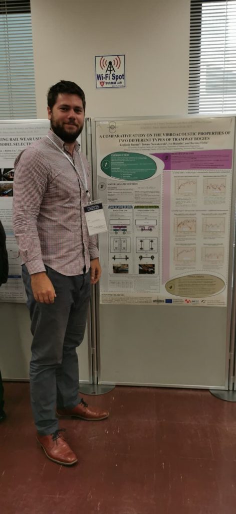The conference was a great opportunity for our colleague to meet with fellow researchers, to listen to the state-of-the-art presentations, and to present the current project findings connected to the hammer impact tests done on two different tramway bogies in order to get the wheel-rail contact to axle-box/bogie frame transfer functions and implement it into the acceleration data.