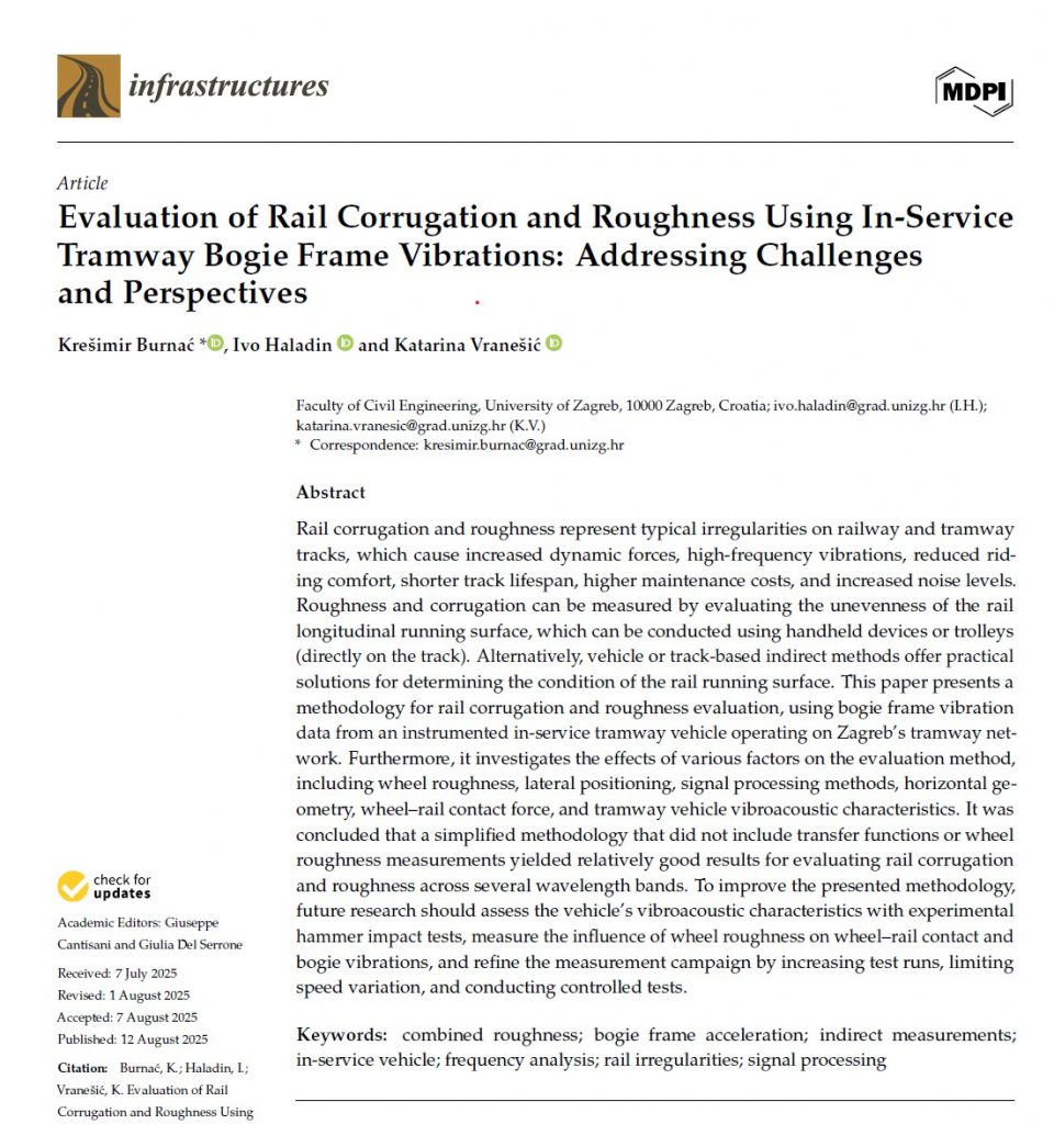 A special thank you to Hrvatska zaklada za znanost (Croatian Science Foundation) for funding the publication of this paper, Sensornet B.V. for providing raw acceleration data, and Zagrebački električni tramvaj – ZET for allowing us to install the data acquisition system and monitor vibrations on the Zagreb tram network.